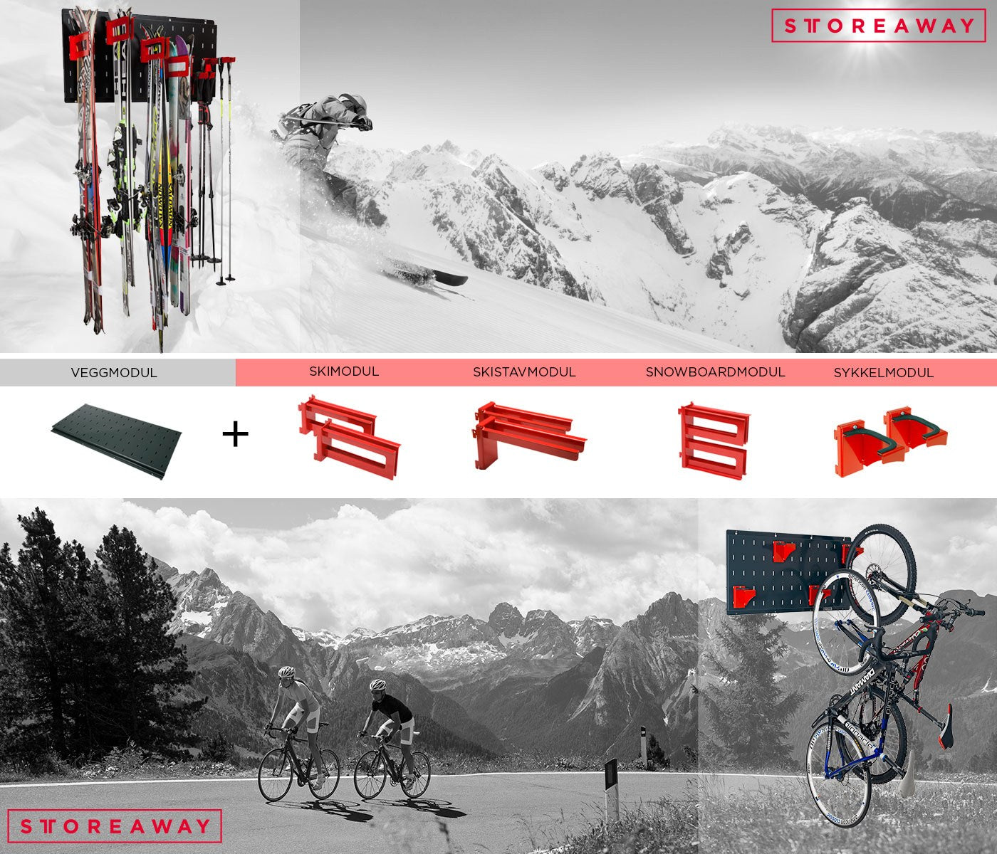 Med Store Away sin lagringsløsning for skiutstyr og sykler så får du en funksjonell og enkel løsning som du kan justere etter behov. Det har aldri vært enklere å lagre skiutstyr og sykler!